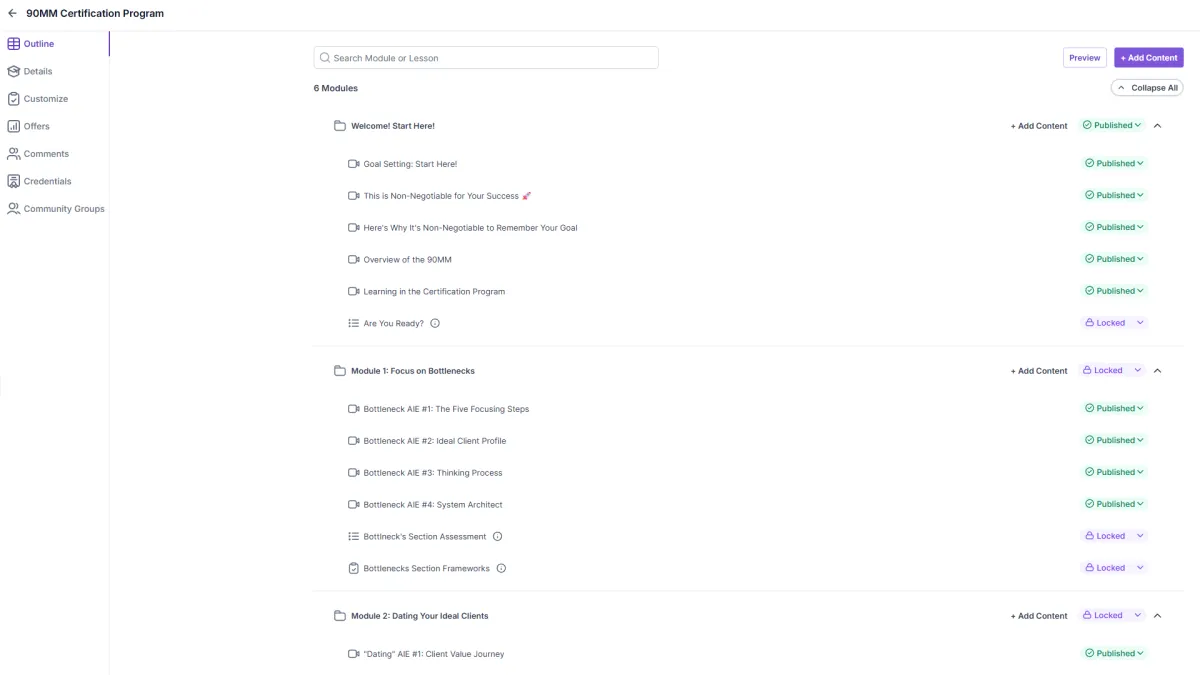 Unlimited courses, unlimited students in your CRM, and unlimited websites and funnels—no caps, no limits, no surprises. Setup, onboarding, and your 30-minute walkthrough are all included so you can start enrolling students on day one.